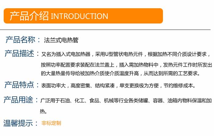 法蘭式電加熱器是由多支加熱管焊接在法蘭上集中加熱。主要用于敞開(kāi)式、封閉式的溶液箱和循環(huán)系統(tǒng)中加熱用。